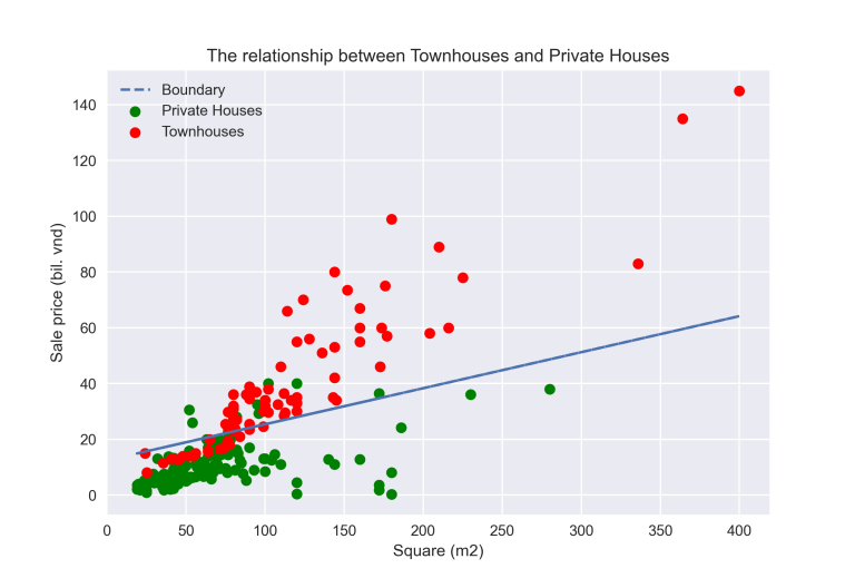 <figure><img src="https://blog.biggee.vn/wp-content/uploads/2021/03/nha-hem-nha-mat-tien-768x528.png" alt=""><figcaption><p>Ví dụ mô hình nhằm loại bỏ các thông tin nhà hẻm nhưng đăng vị trí mặt tiền và các thông tin mặt tiền có giá quá thấp. Kết quả sẽ chia thông tin mặt tiền là những điểm màu đỏ nằm phía trên đường tối ưu, nhà hẻm là những điểm màu xanh dưới đường tối ưu.</p></figcaption></figure>