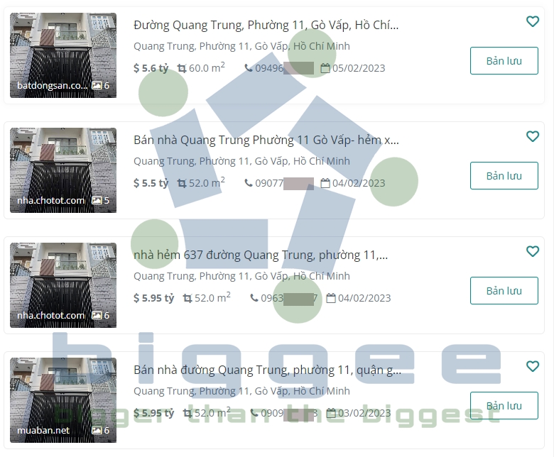 Hình ảnh là chìa khóa để xác định thông tin trùng lặp và tin đăng ảo. Biggee.vn lưu trữ tất cả các hình ảnh thu thập được từ nhiều nguồn để xác định hình ảnh gốc. Các tin đăng tái sử dụng hình ảnh gốc nhưng khác biệt về đặc điểm (vị trí, diện tích, loại bất động sản…) sẽ bị loại. Dữ liệu hiện tại của Biggee.vn có hơn 50 triệu hình ảnh, giúp xác định 33% tin đăng trên các nền tảng đăng tin là tin ảo.