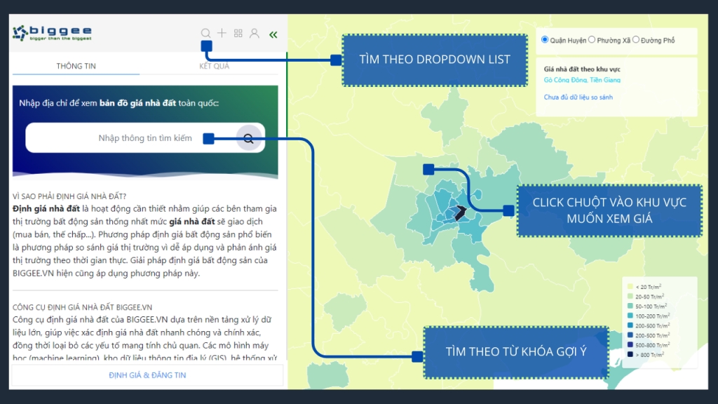 Bài viết này sẽ hướng dẫn bạn tìm kiếm thông tin giá nhà đất/căn hộ trên website Biggee.vn cũng như giải thích các thông tin trên kết quả giá.