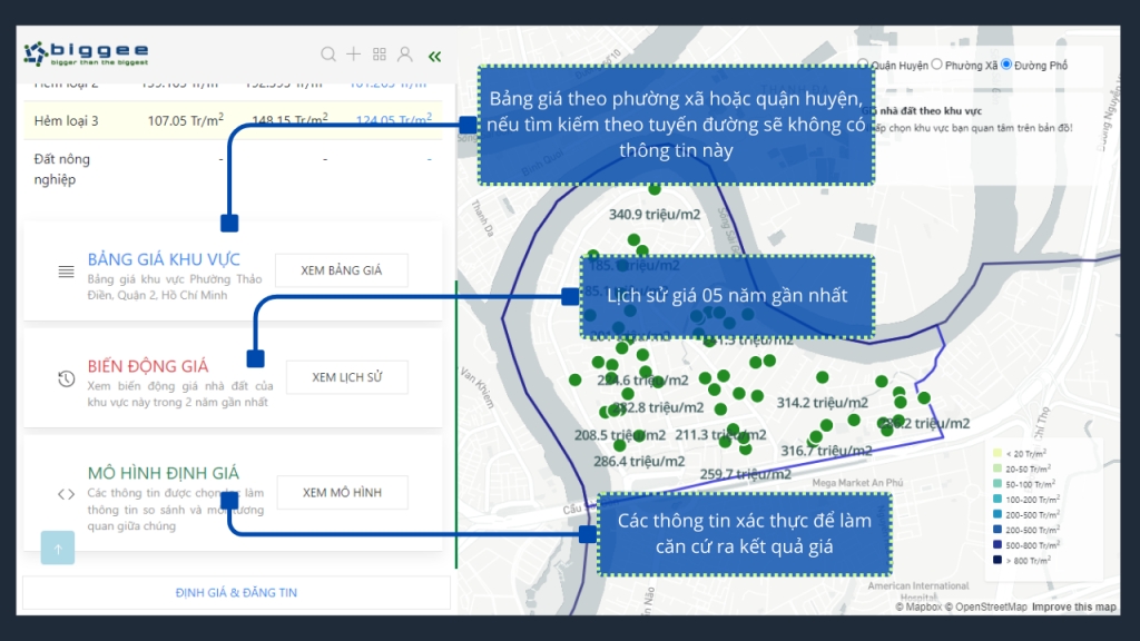 Truy cập Biggee.vn -> Menu Giá nhà đất